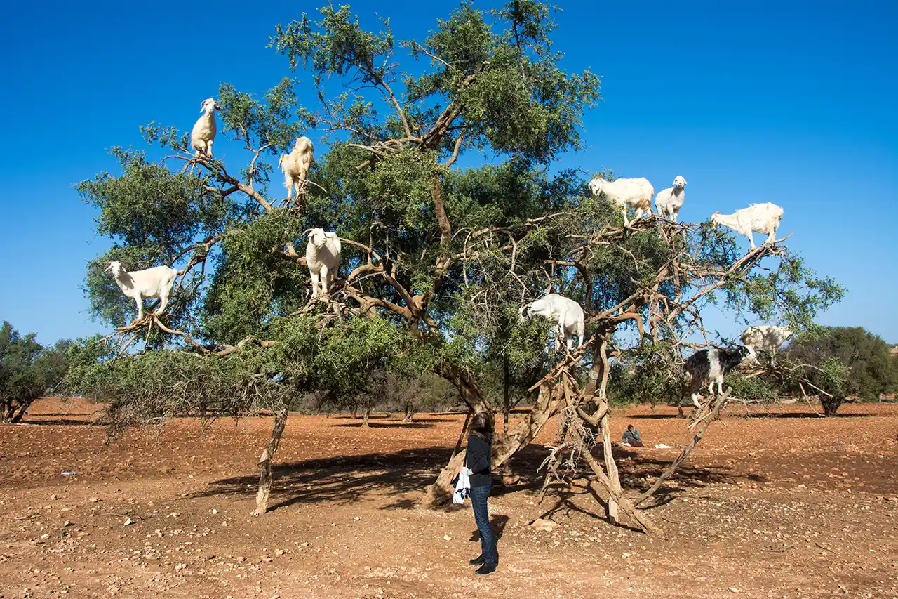 Die Blätter und Früchte der Arganbäume sind bei Ziegen sehr beliebt. Da werden die Tiere sogar zu Kletterkünstlern.
