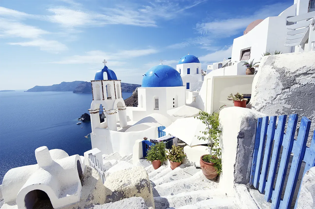 Hach. Damit wäre eigentlich alles gesagt. Oder sollen wir noch ein bisschen mehr schwärmen? Weißgetünchte Häuser, blaue Kuppeln, pinke Bougainvilleen – auf Santorin präsentiert sich Griechenland wie aus dem Bilderbuch. Und das vor einer spektakulären Vulkankulisse.