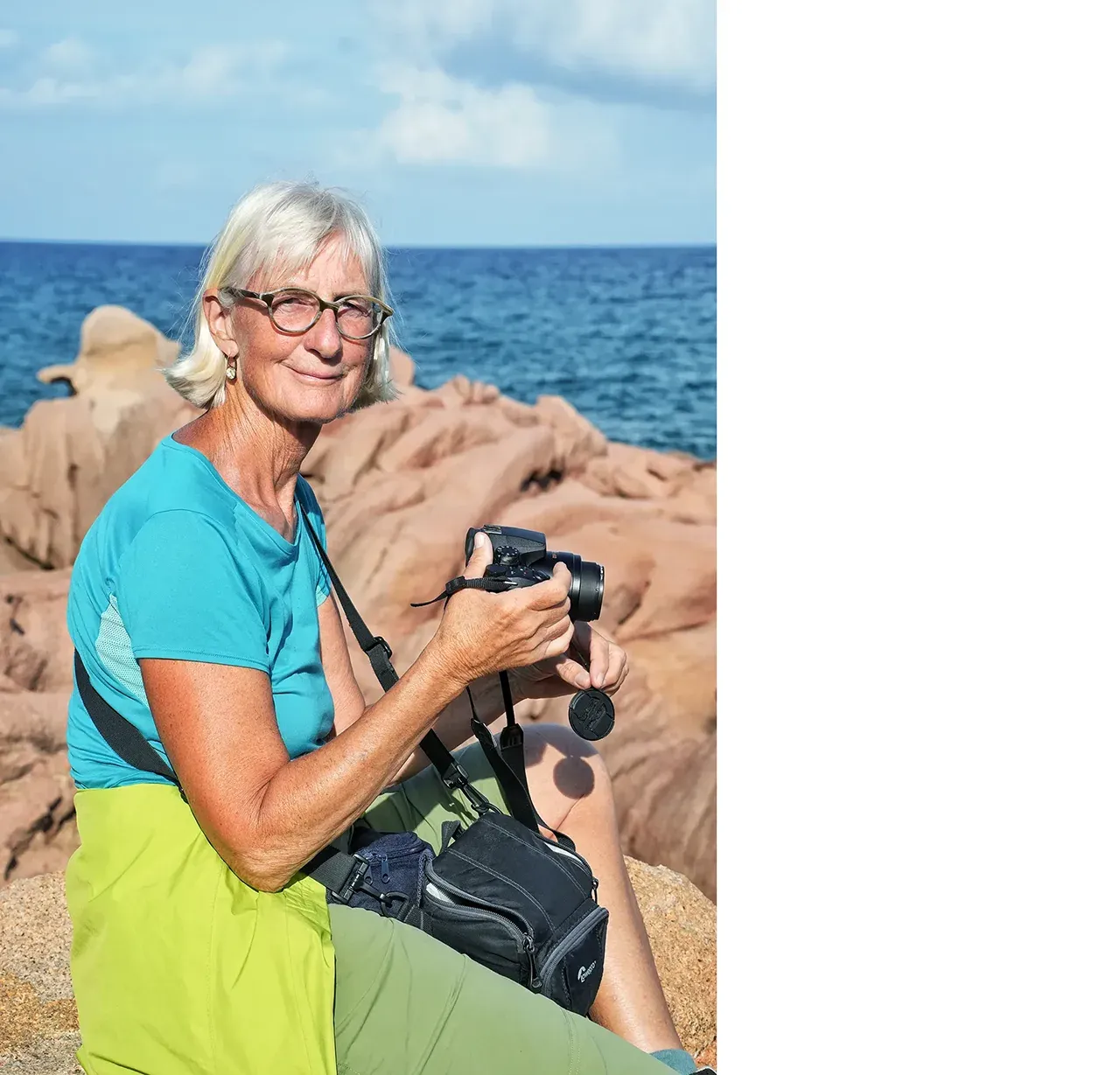 In der Ferne leuchtet der „Pan di Zucchero“, der Zuckerhut, schneeweiß im Mittagslicht – ein einzelner Kalkfelsen im Wasser. Schritt für Schritt rückt er näher. Lisa geht mit gleichmäßigem Tempo voran. „Seit ich laufen kann, habe ich einen Rucksack auf dem Rücken“, erzählt sie. Inzwischen lebt und arbeitet die gebürtige Wuppertalerin schon fast vierzig Jahre lang auf der Insel. Jeden Stein scheint sie einzeln zu kennen und jede Stelle, die rutschig werden könnte. Anders als in Österreich oder der Schweiz gibt es kaum ausgeschilderte Wanderrouten auf Sardinien. Einige aus der Gruppe haben sich genau deswegen für eine geführte Reise entschieden.