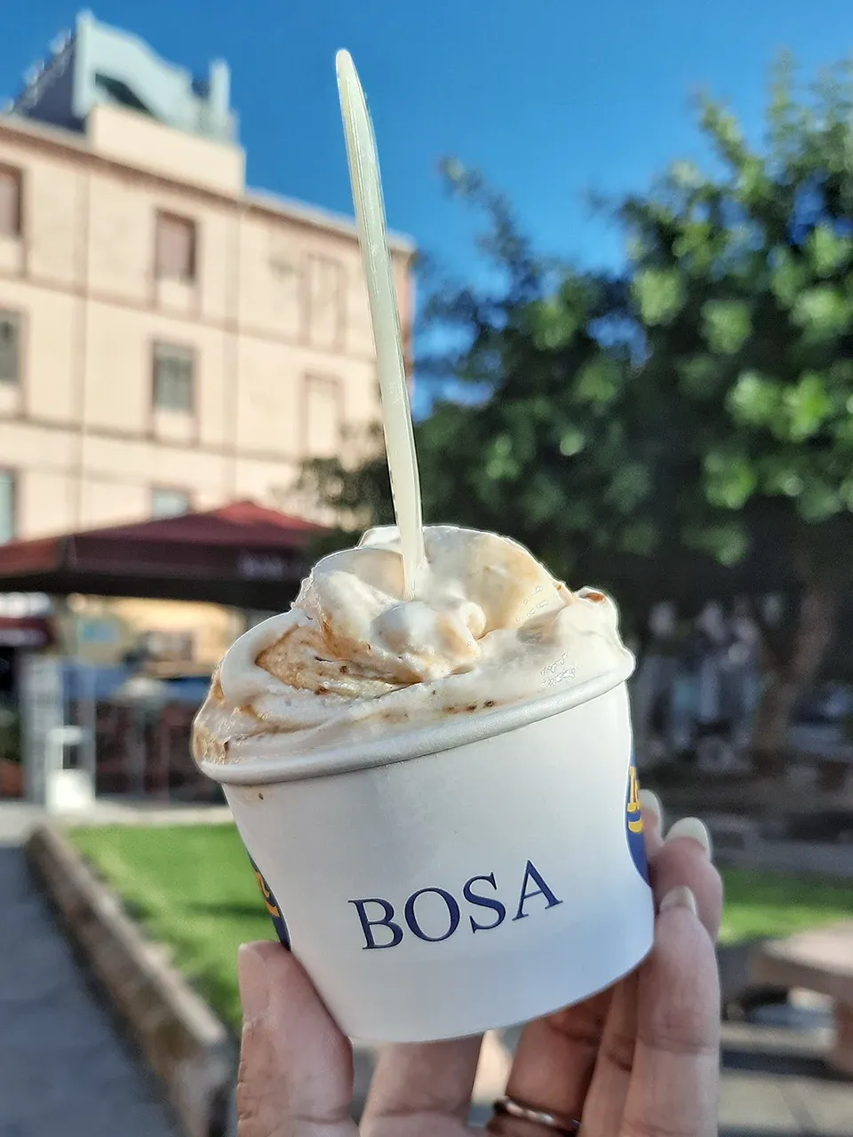 Entlang der Westküste wird die Szenerie immer dramatischer. In der Nähe des Städtchens Bosa geht es zum historischen Turm Torre Argentina, umgeben von ausgespülten Becken und Kratern, die an eine Mondlandschaft erinnern. Bosa selbst liegt am Hang über dem Fluss Temo. Von unten wirken die Häuser wie übereinandergestapelt – ein Mosaik aus allen Tönen von Himbeerrot bis Zitronengelb. Vespas surren durch die Gassen und die Gelaterias scheinen die Farben des Ortes in Waffeln zu verkaufen.